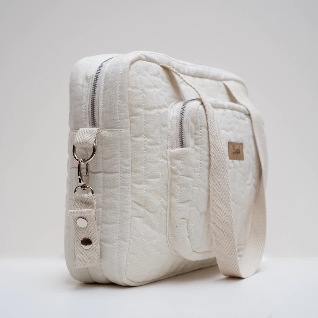 Podés usarlo al hombro como un bolso tradicional o colgarlo de tu cochecito (incluye las correas!)
