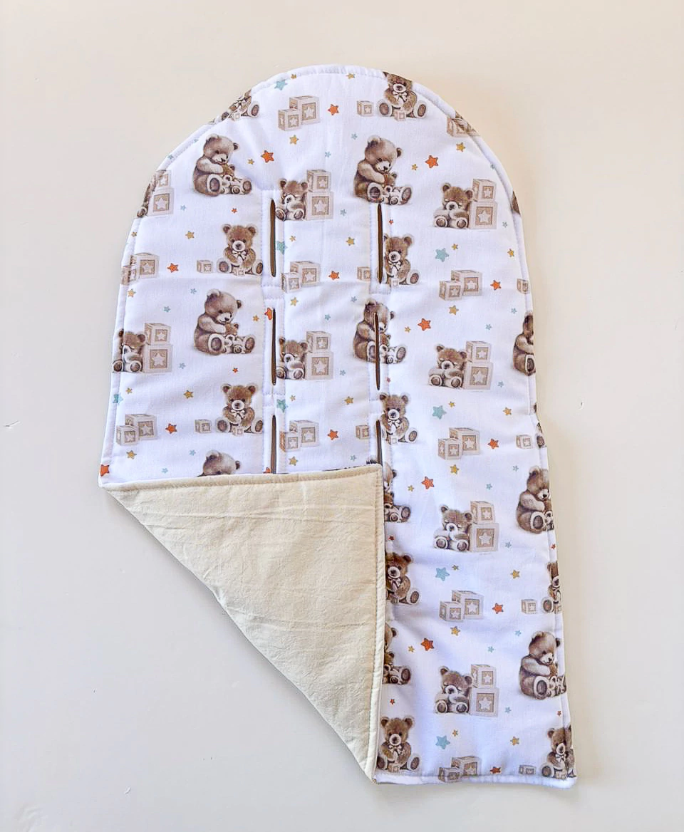 Nuestra funda de cochecito esta confeccionada en gabardina 100% algodón, para que tu bebé no esté en contacto con las telas de los cochecitos y se sienta más cómodo y fresco.