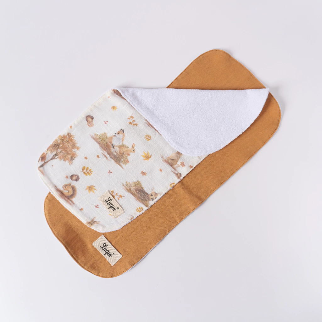 Nuestras babitas son 100% confeccionadas en algodón y tricapa, para que sea súper absorvente: capa superior en gasa de algodón estampada, interior en jersey y capa externa en towel 100% algodón (el towel es una tela similar a la toalla, pero mucho más suave al tacto, ideal para la piel sensible de los bebés)
