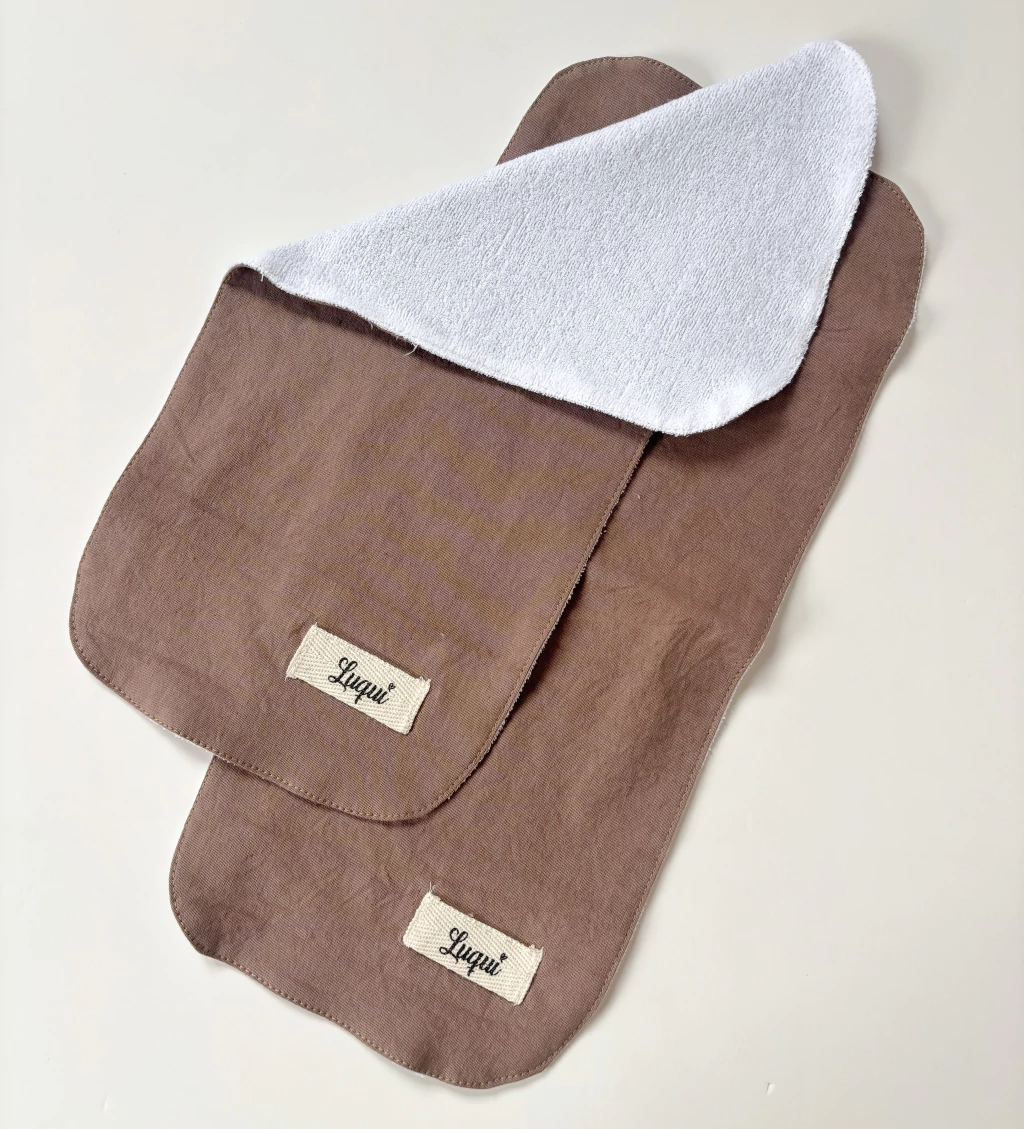 Nuestras babitas son 100% confeccionadas en algodón y tricapa, para que sea súper absorvente: capa superior en gasa de algodón estampada, interior en jersey y capa externa en towel 100% algodón (el towel es una tela similar a la toalla, pero mucho más suave al tacto, ideal para la piel sensible de los bebés)