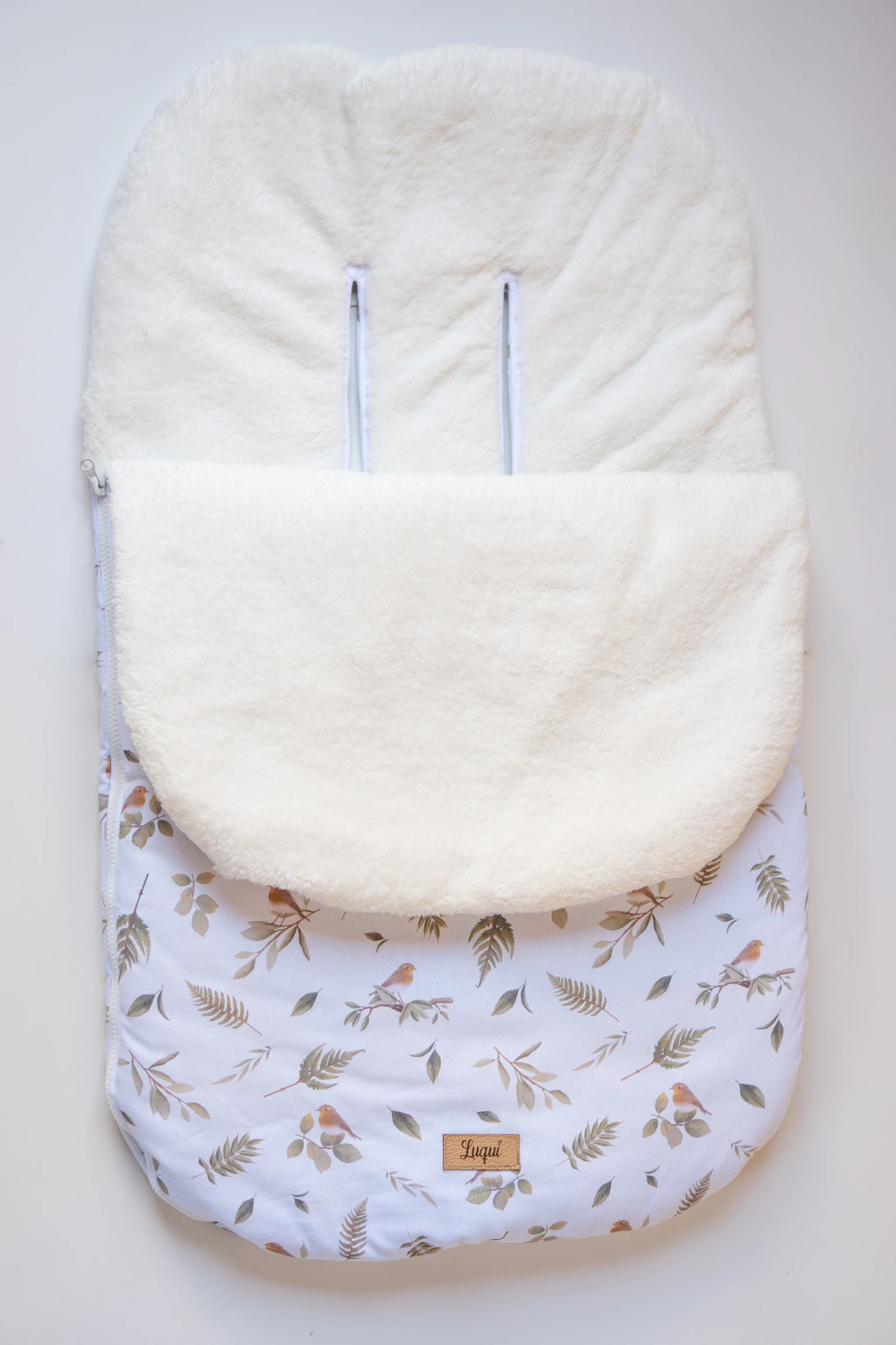 Tapa desmontable, rellena con guata 200 gr. Si entrás en un lugar calefaccionado, podés sacar la tapa y que tu bebé siga cómodo en su cochecito/huevito.